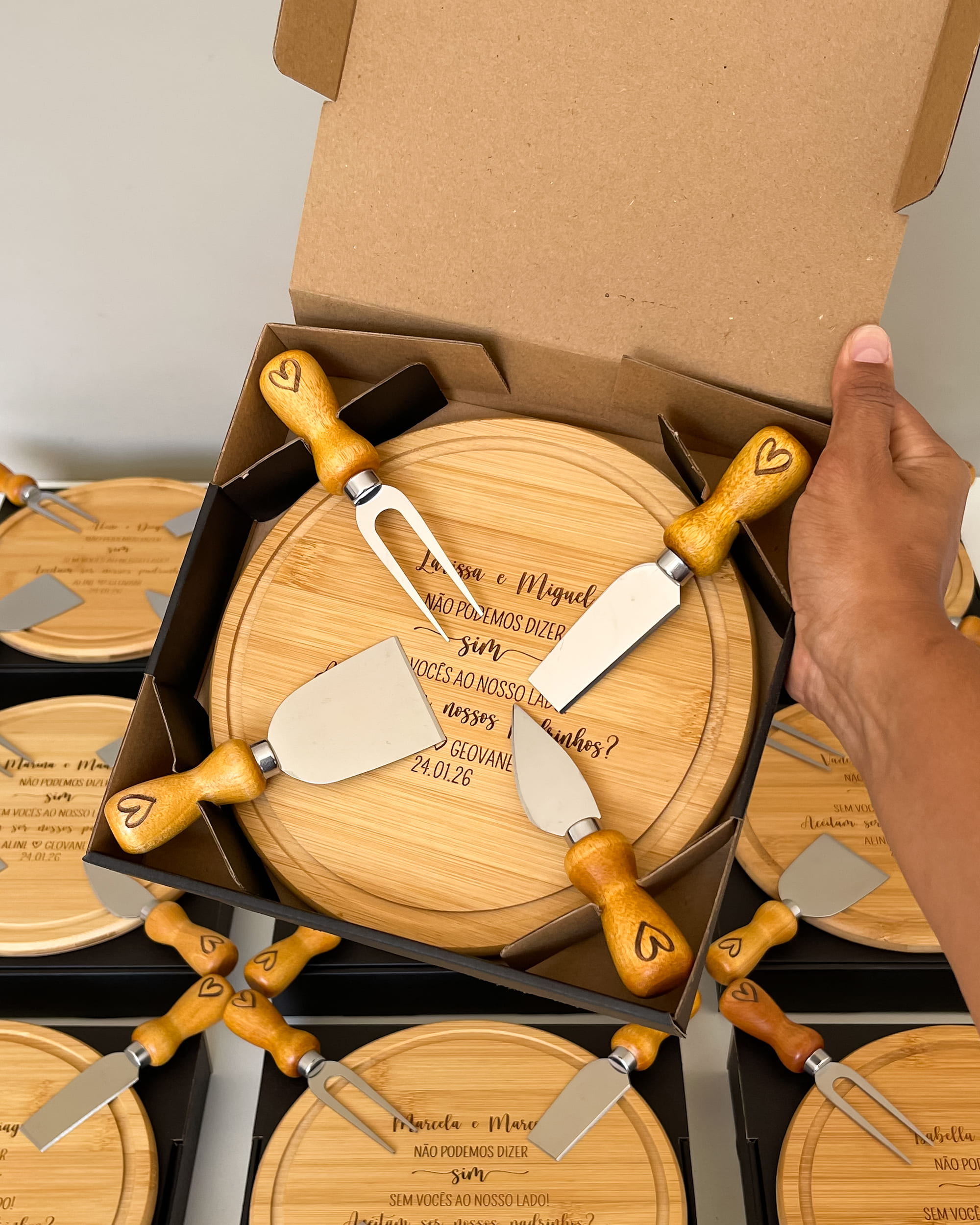 Este Kit para Queijos em Bambu Personalizado da HOME GIFTS foi desenvolvido exatamente para isso: transformar um simples convite em uma lembrança inesquecível.